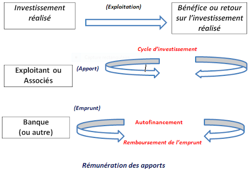 Tout d'abord dès la constitution de l'entreprise celle-ci sera confrontée à ce qui est communément appelé le cycle d'investissement, c'est-à-dire le cycle qui concerne l'acquisition des biens nécessaires à l'activité de l'entreprise. Lors de ce cycle d'investissement, le matériel acheté et donc acquis est installé et est totalement payé, c'est pour cela que ce cycle est long. Également, chaque année, l'entreprise doit réaliser divers investissements correspondant à de multiples objectifs pour assurer sa survie et son développement. Ainsi, on peut avoir des besoins corporels (concernant l'acquisition de terrains, équipements, installations), des investissements incorporels (Logiciels, formations des employées ou encore en recherche(Département R&D de l'entreprise) ). Pour répondre à ces besoins, l'entreprise peut selon sa situation faire appel à différents financements de fonds.